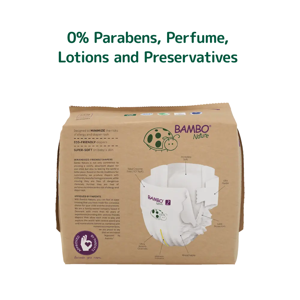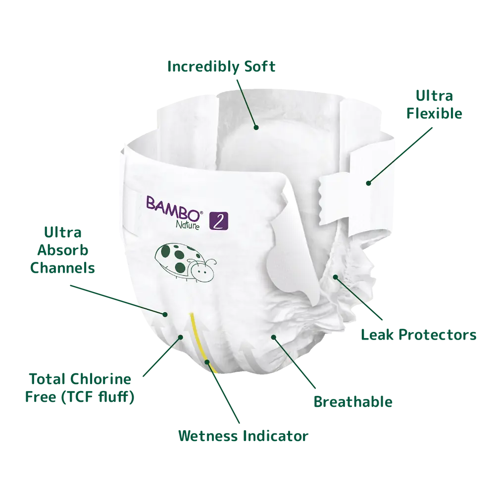 Give your newborn the best start with Bambo Nature’s soft and gentle diapers. With our breathable design and super-absorbent core, your baby will be dry and comfortable. Plus, the handy wetness indicator lets you know exactly when it’s time for a change.