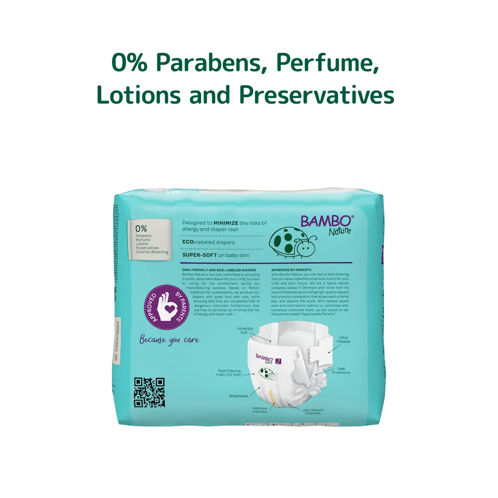 Give your newborn the best start with Bambo Nature’s soft and gentle diapers. With our breathable design and super-absorbent core, your baby will be dry and comfortable. Plus, the handy wetness indicator lets you know exactly when it’s time for a change.